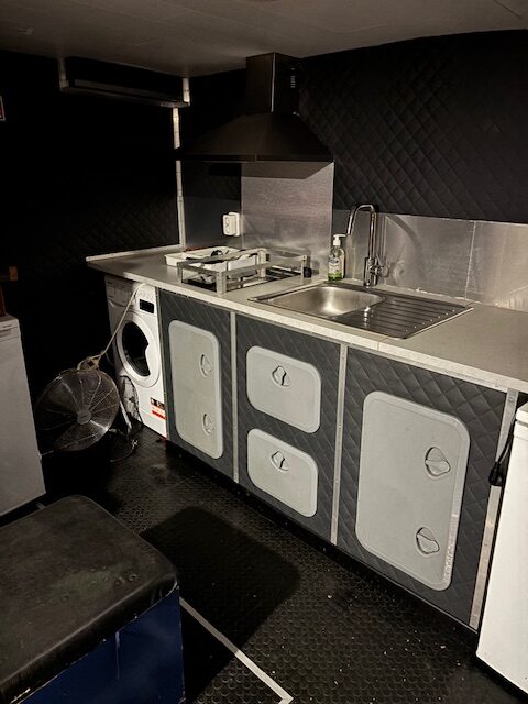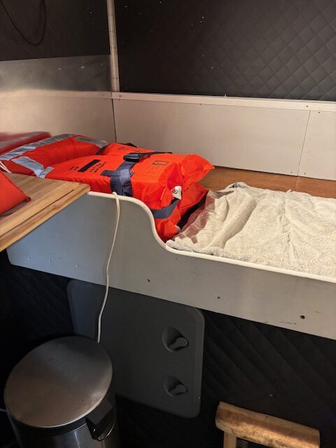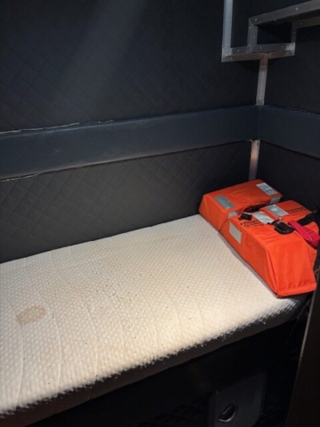 8 berths, toilet, shower , galley and messroom